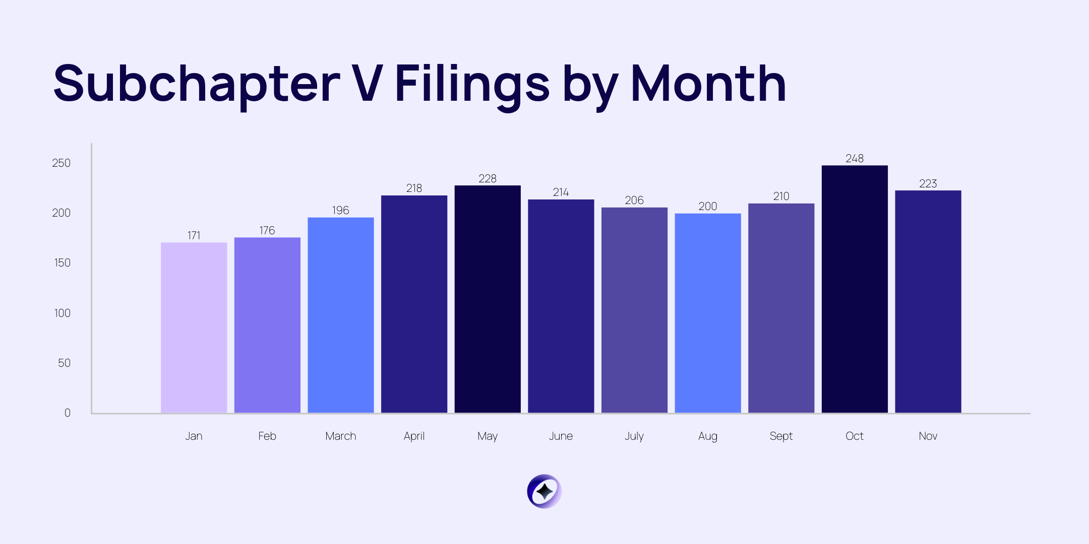 From January through November 2025, Subchapter V filings showed a clear pattern.