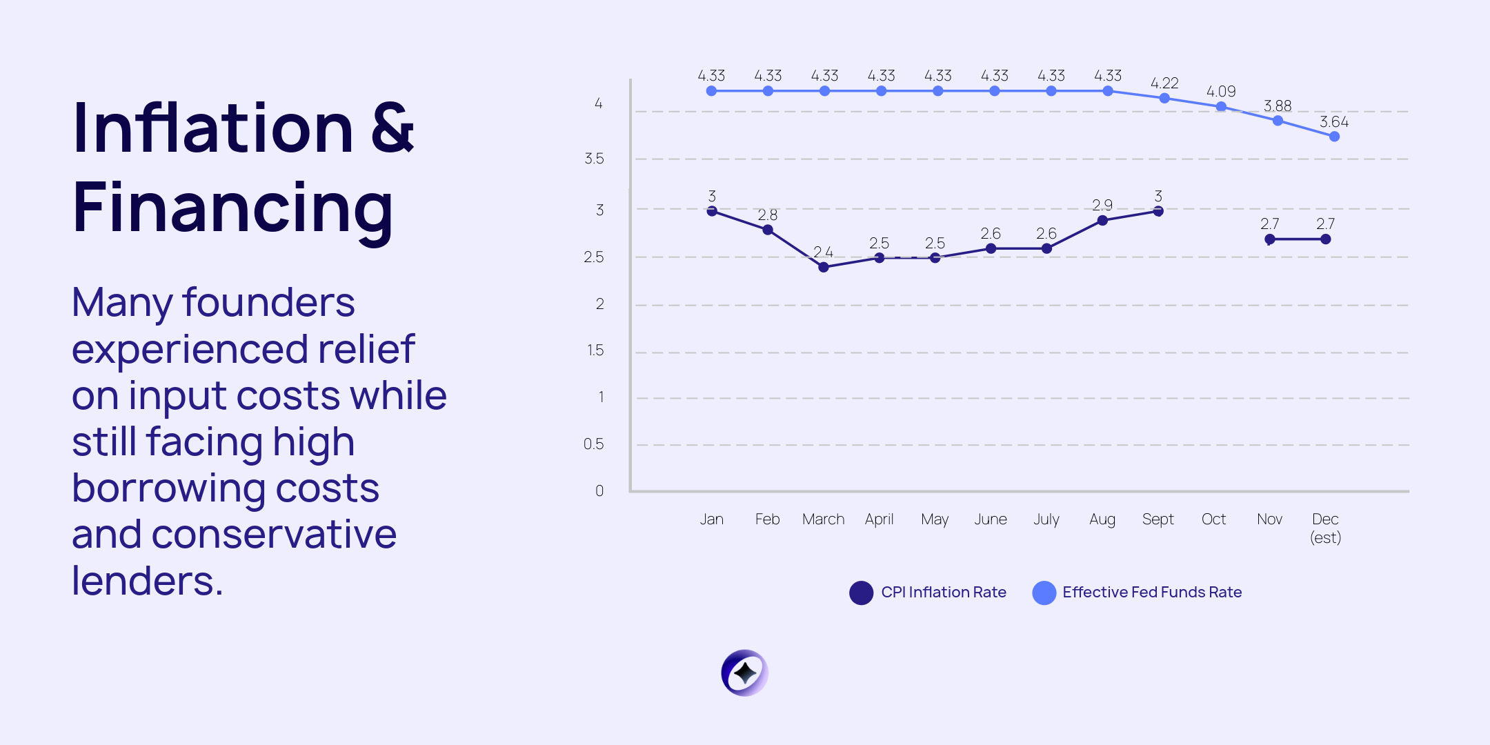This gap mattered. Operating costs stabilized sooner than access to capital improved. Many founders experienced relief on input costs while still facing high borrowing costs and conservative lenders.