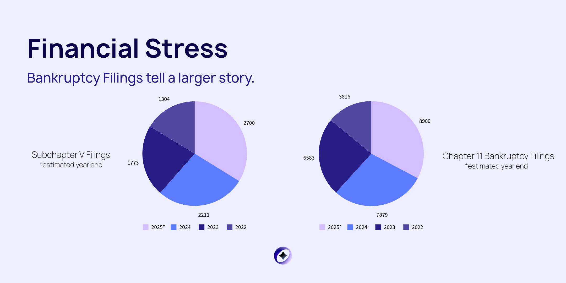 Stress accumulated slowly, then became visible. Bankruptcies and closures rose after months of softer demand.